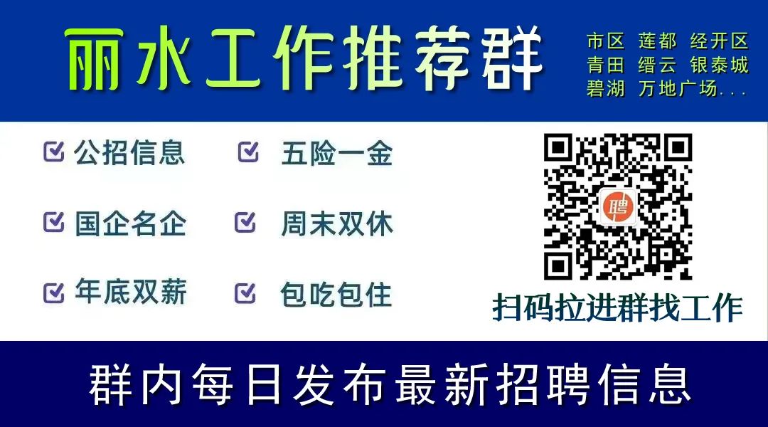 温馨提示: 由于微信修改了推送规则,没有经常点“在看”的,会慢慢收不到推送。请将“丽水人才招聘网”加为星标,每次看完后点点右下角的“赞”和“在看”,期待我们的再次相遇~