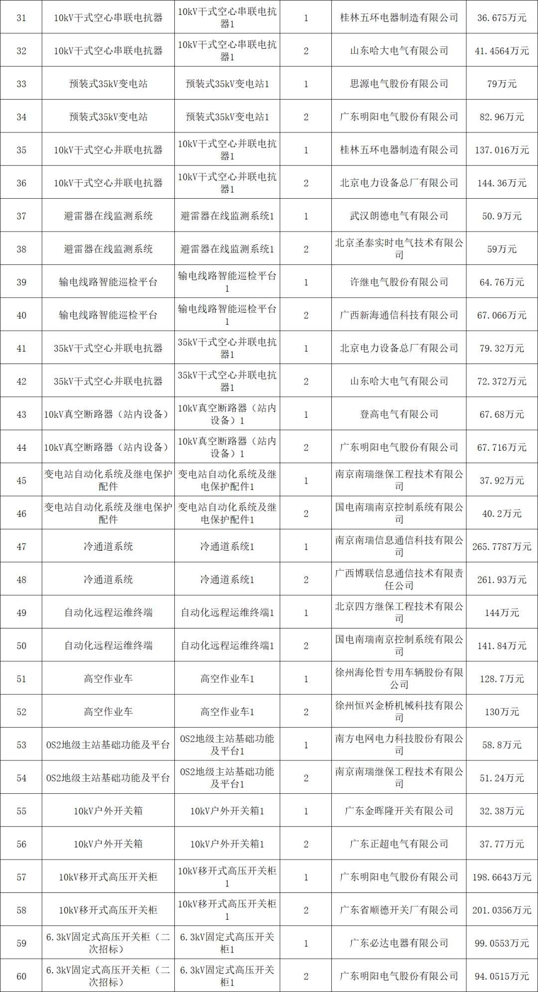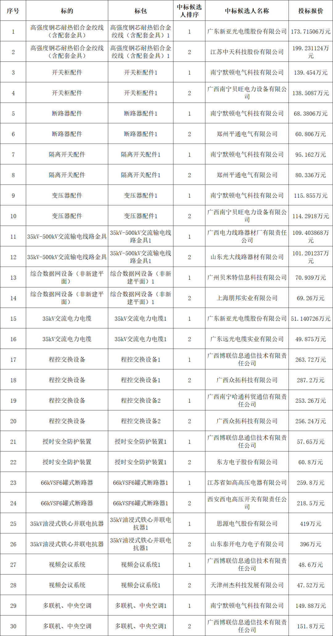 广西电网公司2023年省级物资集中采购第六批公开招标 (招标编号:CG0400022001667620),经评标委员会评审,现将中标候选人公示如下: