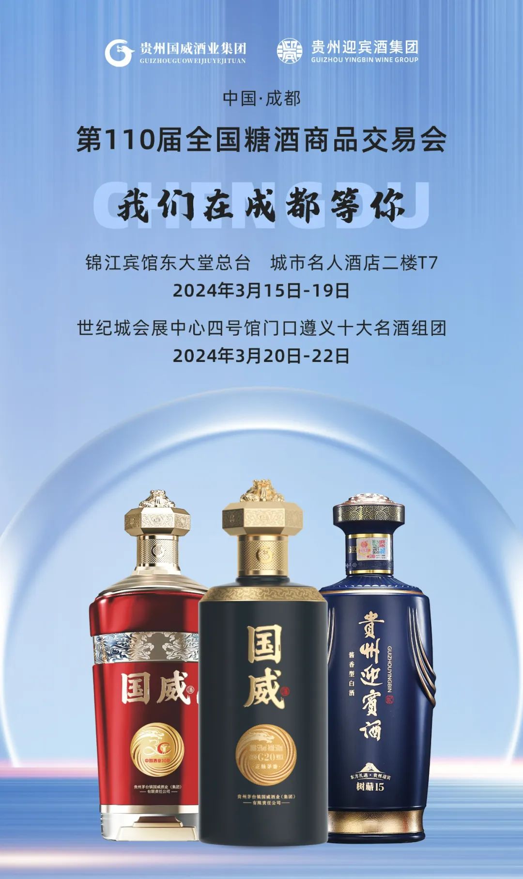 本次糖酒会是国威酒业集团荣获“遵义十大名酒”称号后的首次公开亮相,在酒企“秀肌肉、比耐力”的关键时刻,国威酒业集团携国威、贵州迎宾酒重磅亮相,一城三展、双品牌联动,以“产品+渠道+推广”组合拳打响了春糖破圈之战。