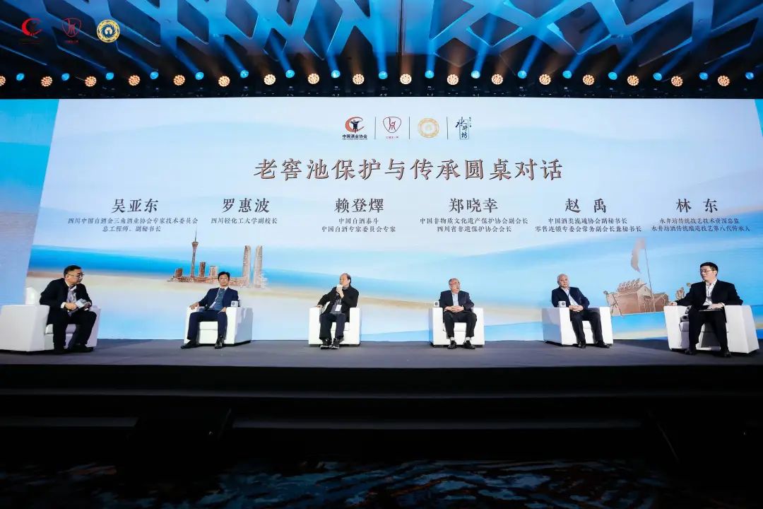 如何更好保护和传承白酒酿造工艺?产区和酒企相辅相成地推动白酒产业发展?在大会上,围绕“老窖池保护与传承”主题,邀请四川中国白酒金三角酒业协会总工程师吴亚东,中国白酒泰斗、中国白酒专家委员会专家赖登燡,中国非遗保护协会副会长、四川省非遗保护协会会长郑晓幸,中国酒类流通协会副秘书长、零售连锁专委会常务副会长兼秘书长赵禹,四川水井坊股份有限公司传统技艺总监、水井坊酒传统酿造技艺第八代传承人林东,举办了白酒科研技术专家沙龙,带来一场思想与观点的饕餮盛宴。