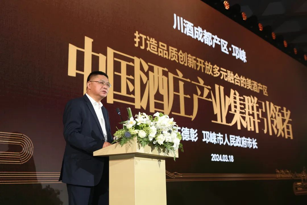 在大会上,邛崃市委书记刘刚致辞时表示,当前,随着产业结构的深度调整和消费需求发生深刻变化,白酒产业由“品类”向“产区”发展的态势愈发明晰,产区化的浪潮正在将白酒产业发展推向新的阶段和高度。邛崃充分发挥成都超大城市产区优势,强化有根企业培育、新兴品牌孵化和功能平台打造,正着力建设品质、创新、开放、多元、融合的美酒产区,努力为中国酒业和成都产区高质量发展、新质生产力培育作出探索实践。“我们坚持以匠心邛酒赢得市场青睐,以名优品牌引领产区发展,以酒旅融合提升产业价值。”