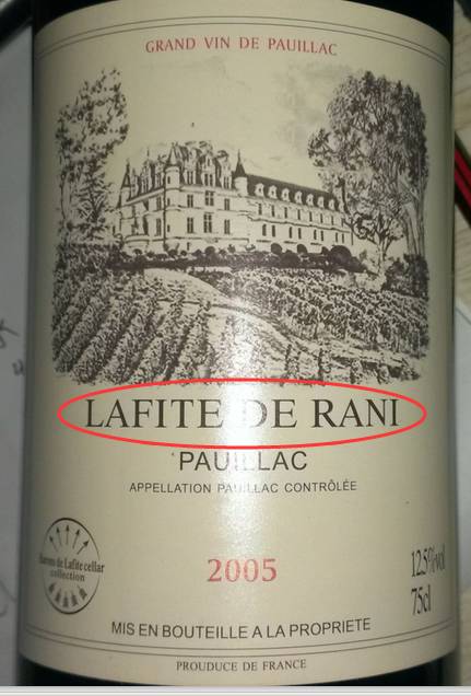 正因为拉菲市场上的价格昂贵,很多人都会铤而走险,不惜代价生产一些假拉菲或者打着拉菲酒庄的旗号,弄的拉菲擦边球有这些,比如: