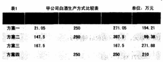 【方案一】由A公司自己完成该品牌的白酒的生产制作过程。