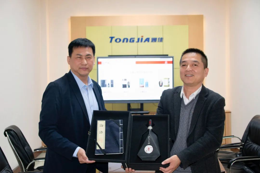 为加强企业间交流,增进友好关系,更好促进企业跨界合作,3月16日,孔府家酒业济宁市区大区经理户传坤、团购经理李景芝以及济宁润盛轩商贸总经理王文胜一行走进山东通佳智能装备有限公司,开展“名酒进名企”交流活动,共商合作,共话发展。