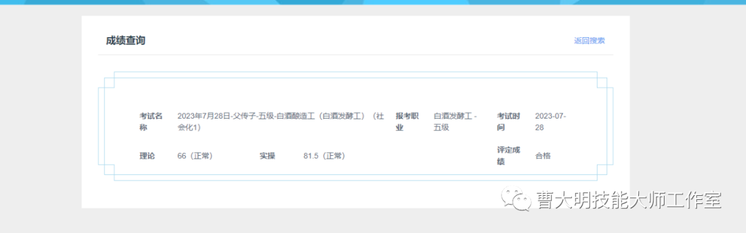 关于白酒酿造工技能等级认定成绩查询通知