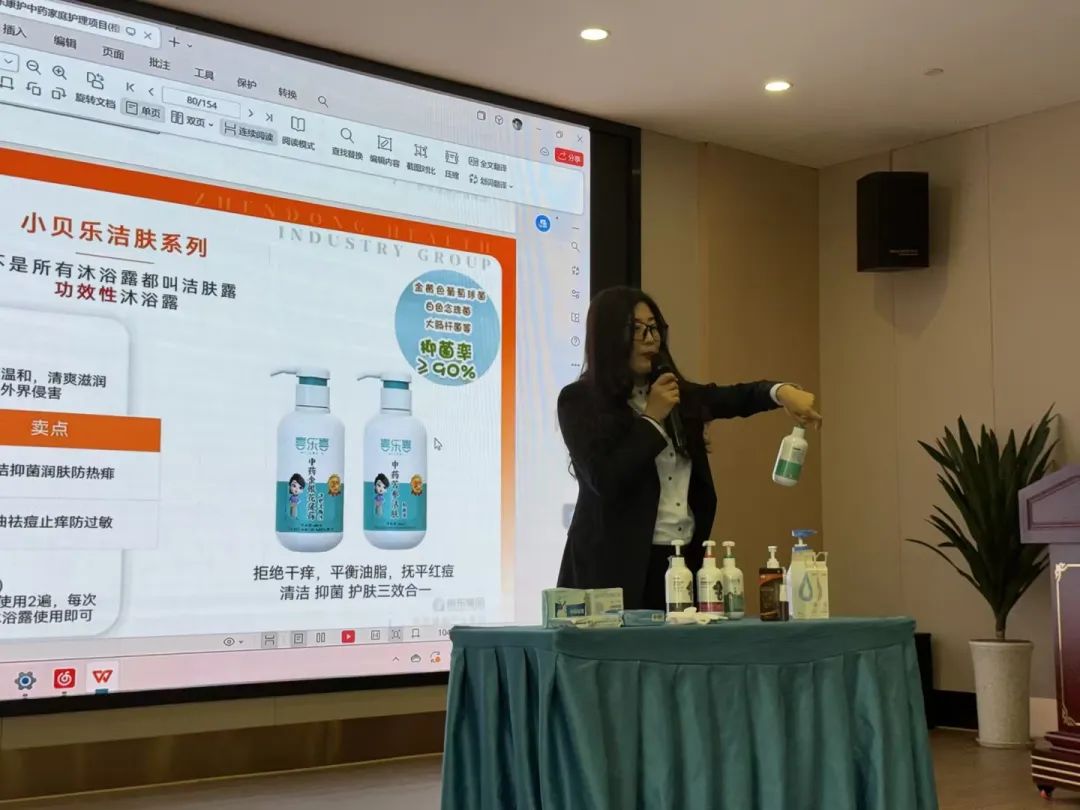 五和医养堂与康护公司内外兼修,相辅相成,完美解决人体由内而外的健康需求。康护负责人也登台讲解了洗护用品。