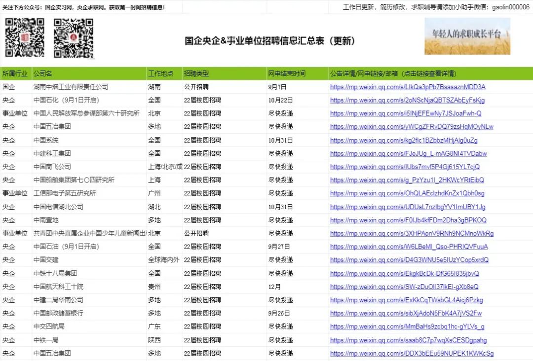 ☛ 国企2024校招/实习汇总表