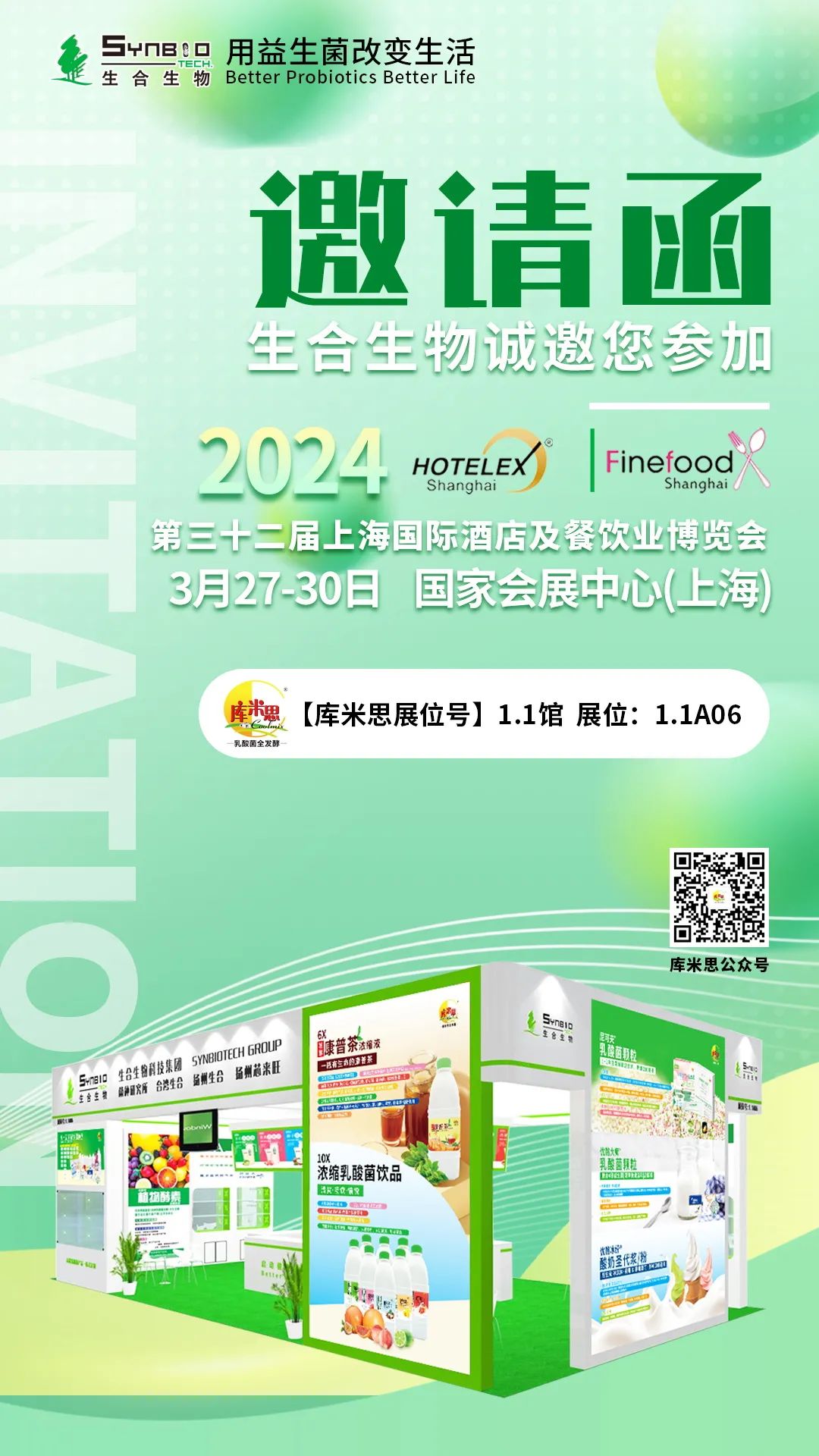 2024年3月27日第三十二届上海国际酒店及餐饮业博览会在上海国家会展中心盛大开幕,专注乳酸菌领域20年,高端乳酸菌产品供应商库米思作为重要品牌方受邀亮相,将携专业水吧应用解决方案及新趋势产品惊艳亮相于1.1A06展位,诚邀大家莅临参观体验。