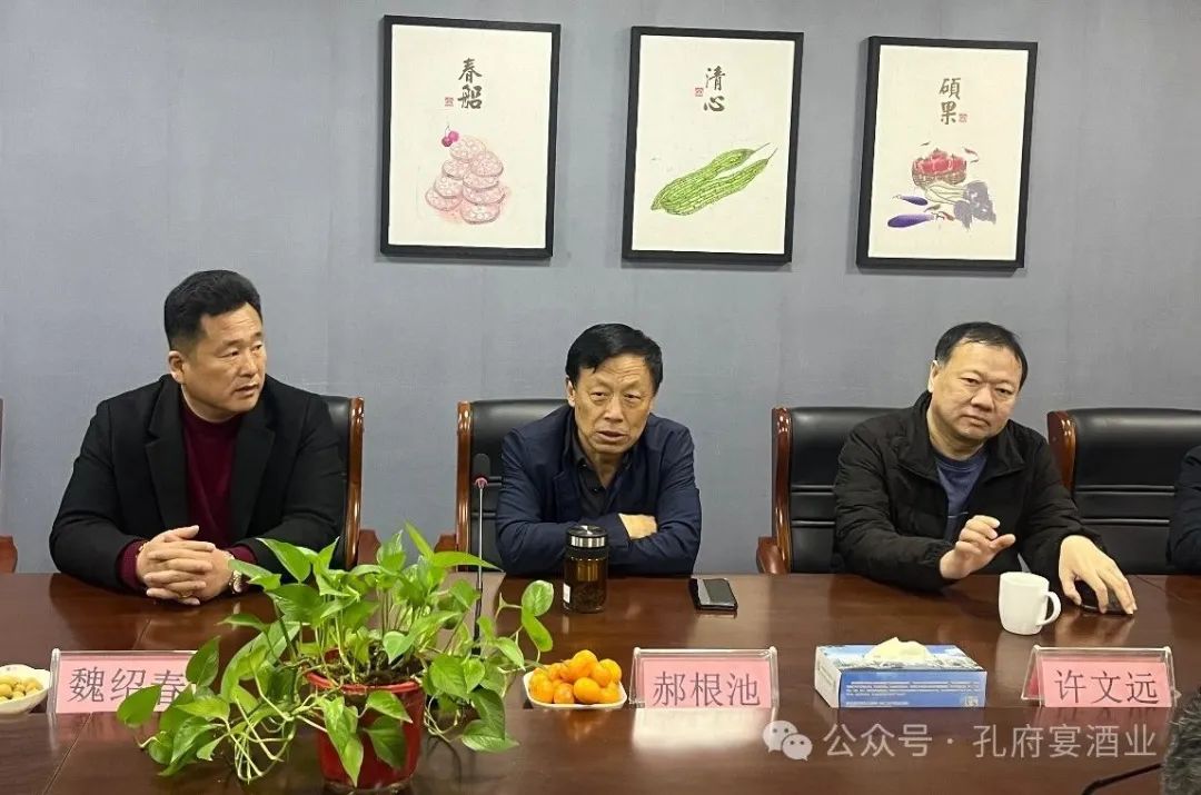 座谈会上,郝根池首先对济宁经发投资集团和孔府宴酒业一行的到来表示热烈欢迎。而后介绍了企业的基本情况,创建于1998年的济宁蔬菜批发市场,是鲁西南最大的农产品批发市场,是省、市农业产业化重点龙头企业和国家农业部认定“定点市场”,汇集了来自国内外20多个地区 200多种农产品,已成为济宁市农副产品集散中心、价格形成中心、信息发布中心,是鲁西南最大的“菜篮子”“果盘子”,也是济宁市民生工程,承载着“保供、稳价、保安全”的重任。与孔府宴结缘,是看到孔府宴作为一家济宁当地的老牌酒厂,有国企背书,其信誉度和美誉度值得认可。通过本次活动,希望双方对企业文化、战略思路等进一步加深了解。