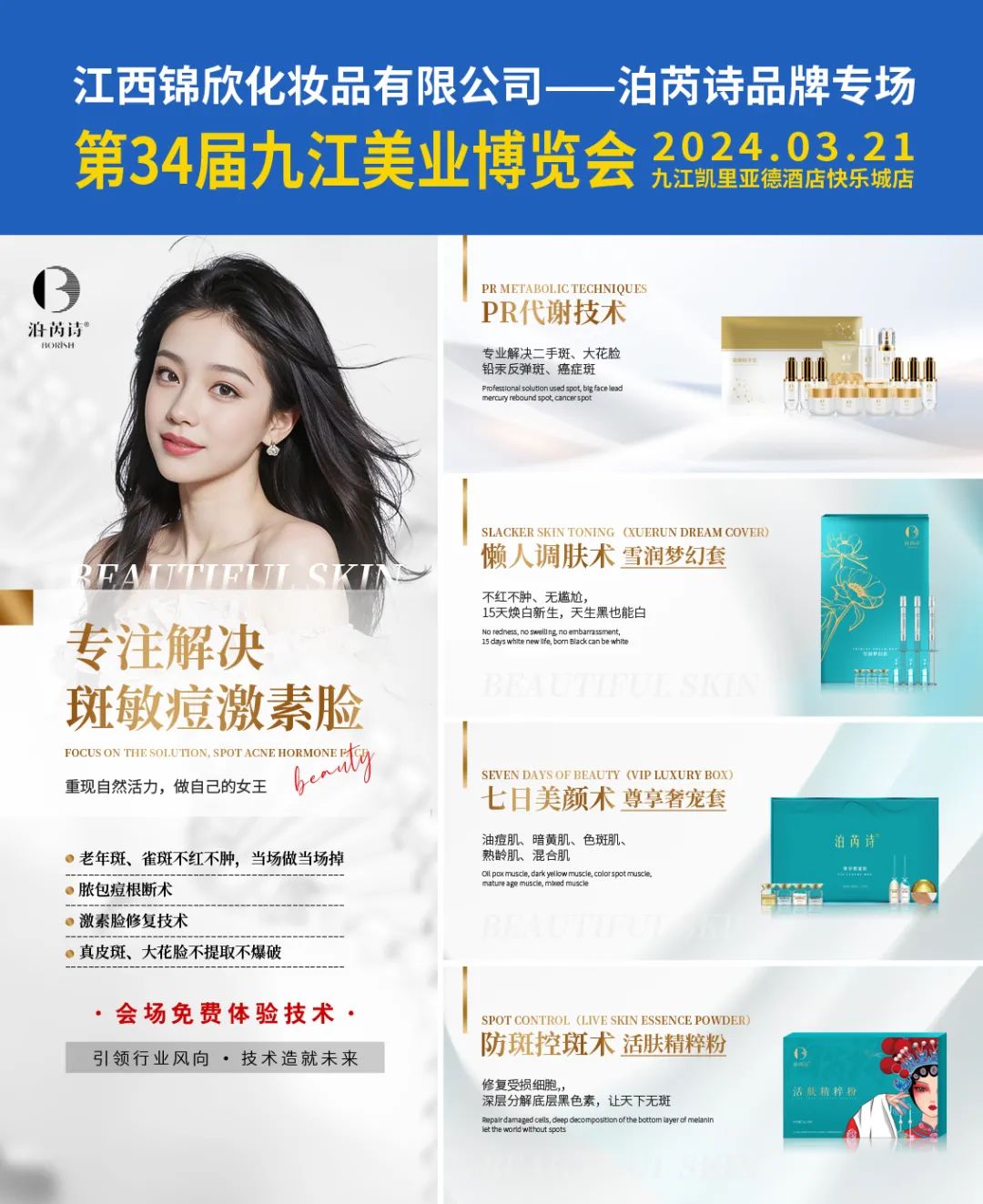 3月21日,第34届江西新美业博览会九江站即将在九江凯里亚德酒店快乐城店开展,迎接美业人为“美”而来,助力挖掘新赛道、开拓新项目。