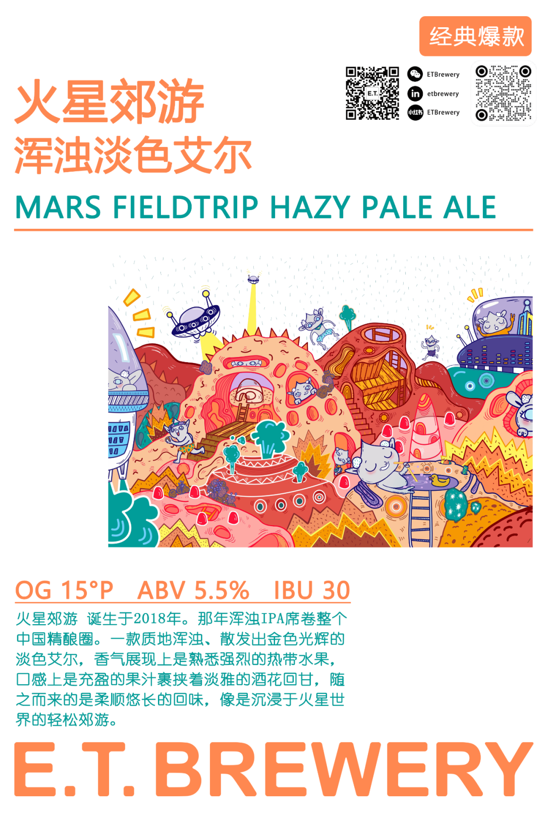 E.T. broke onto the Guangdong craft brewing scene in 2016 with a mind for innovation, excellence, and good designed beers. While the name E.T. brings to mind little green men and the 1982 Spielberg classic, the name itself is simply the combination of their founders'names, Erique and Terry, into one. That being said, they love leaning into the "alien" idea in that their beers and designs are as out there as outer space: expressive and memorable.