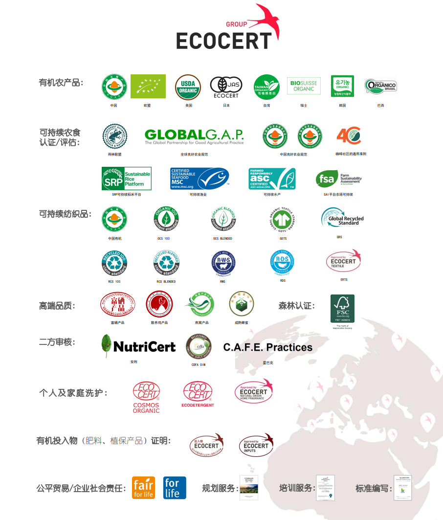 法国国际生态认证中心(ECOCERT SA)成立于1991年,是全球可持续认证的领军者。2007年,北京爱科赛尔认证中心有限公司作为法国国际生态认证中心在华设立的分支机构正式成立,并获得中国国家认证认可监督管理委员会(CNCA)的批准,开始为有机产品生产销售企业提供认证服务,成为国内首个可以同时独立完成国际和中国有机产品认证服务的认证机构。中心发展多年,本着立足北京,辐射全国的方针,在云南、东北、华东三地相继设立分中心,更好地满足不断增长业务的本地化服务需求。服务客户包括蒙牛、伊利、圣牧、中粮、北大荒、雀巢、正谷、李锦记、安琪酵母等国内外优质企业与品牌。