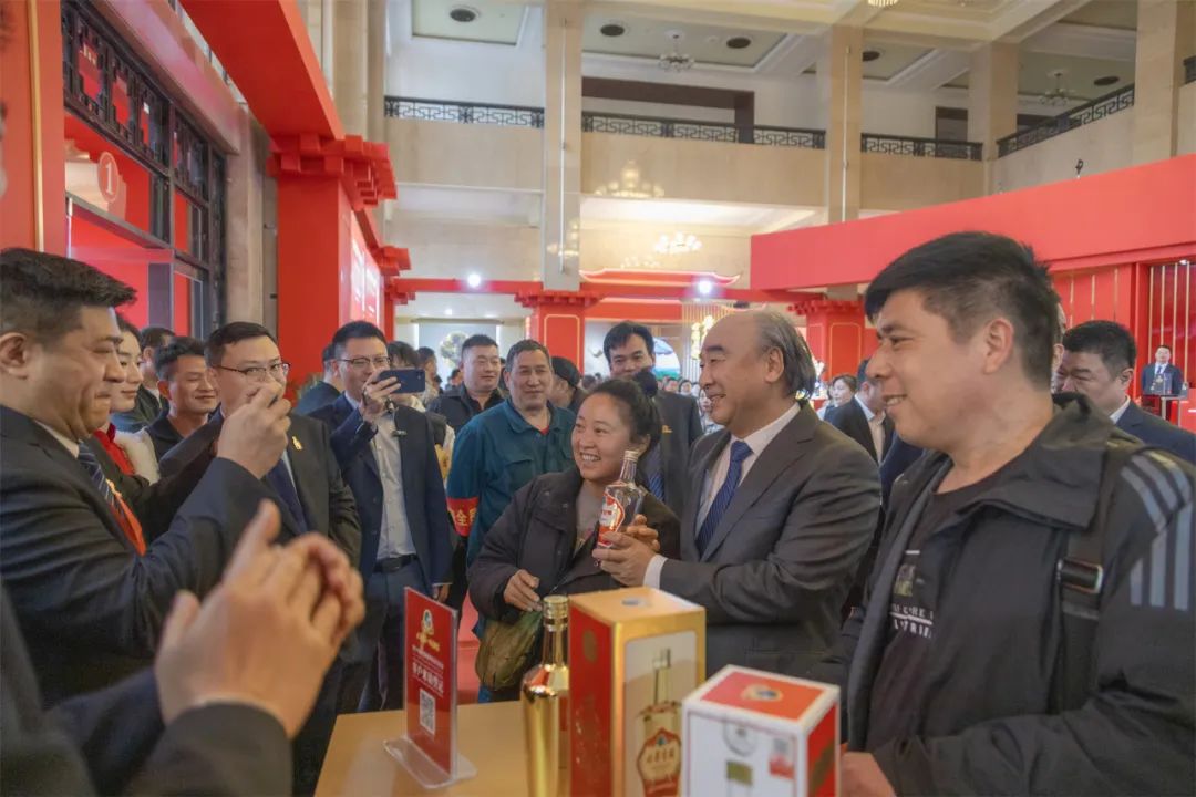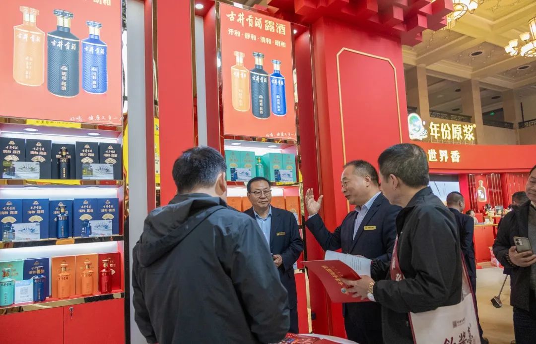 图丨3月17日,古井集团党委书记、董事长梁金辉在展厅内与客商交流互动