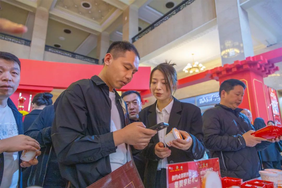 此外,古井贡酒与八喜、马迭尔集团先后跨界合作推出的联名冰淇淋和联名冰棍在本次春糖会展上一同亮相,给现场的宾客带来一抹舌尖上的冰爽浓香,到场客商扫码领取,热情高涨,展馆内甜蜜值拉满。