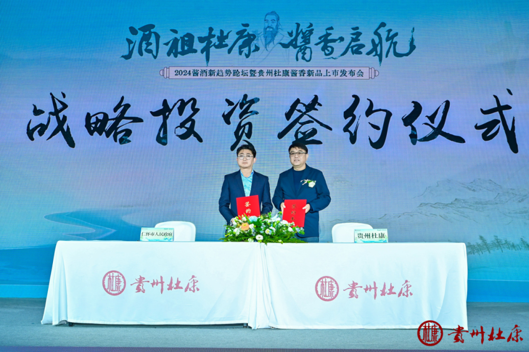 发布会现场,贵州杜康首先亮出了三大重磅环节,向行业展露出其跨入酱香赛道的最大底气。其一,是与仁怀市达成战略签约;其二,是举行贵州杜康酒业股份公司揭牌仪式;其三,是贵州杜康全线产品重磅发布。