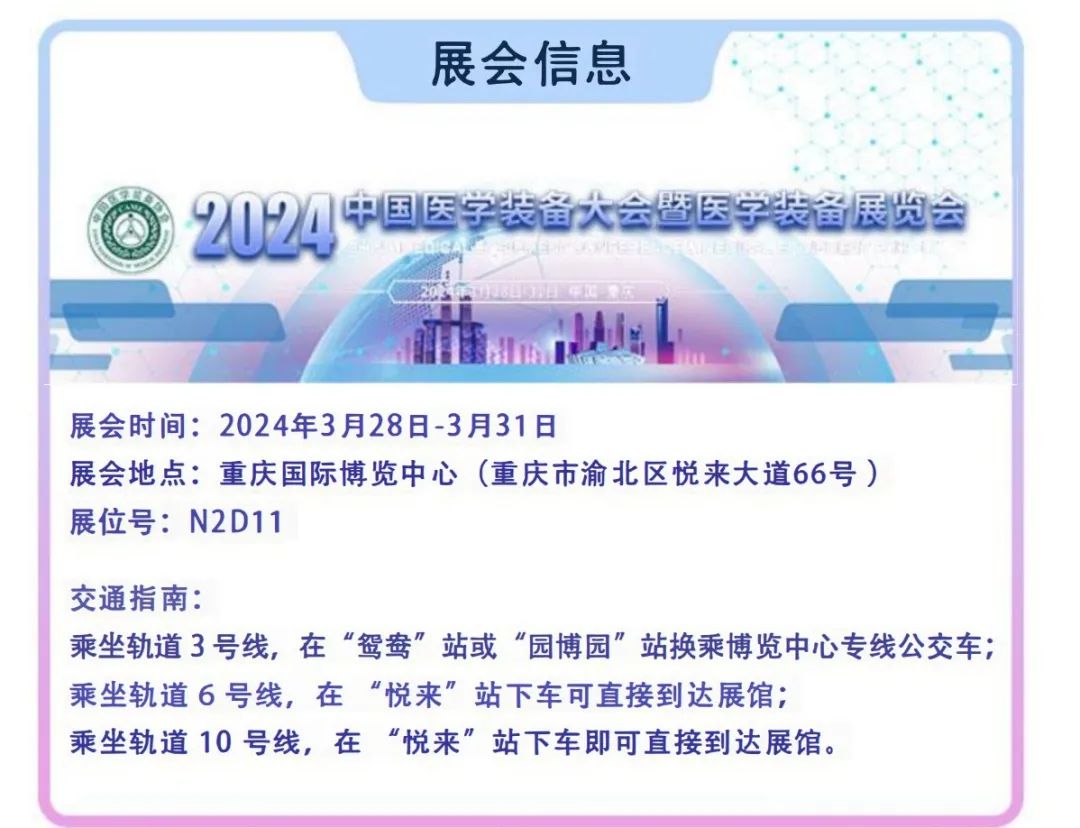 三月阳春,杨柳风和,江城回暖,“中国医学装备大会暨 2024 医学装备展览会”将于3月28日-31日在重庆国际博览中心盛大召开。关注医疗前沿技术,引领行业创新发展,医工融合,谱写创新发展新篇章,届时必然群英荟萃,医商云集,盛况非凡。