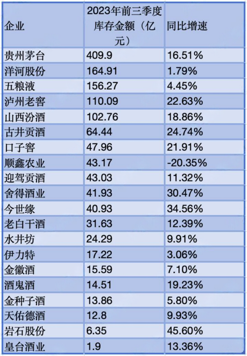 2023年三季度各家企业的库存仍在蒸蒸日上。