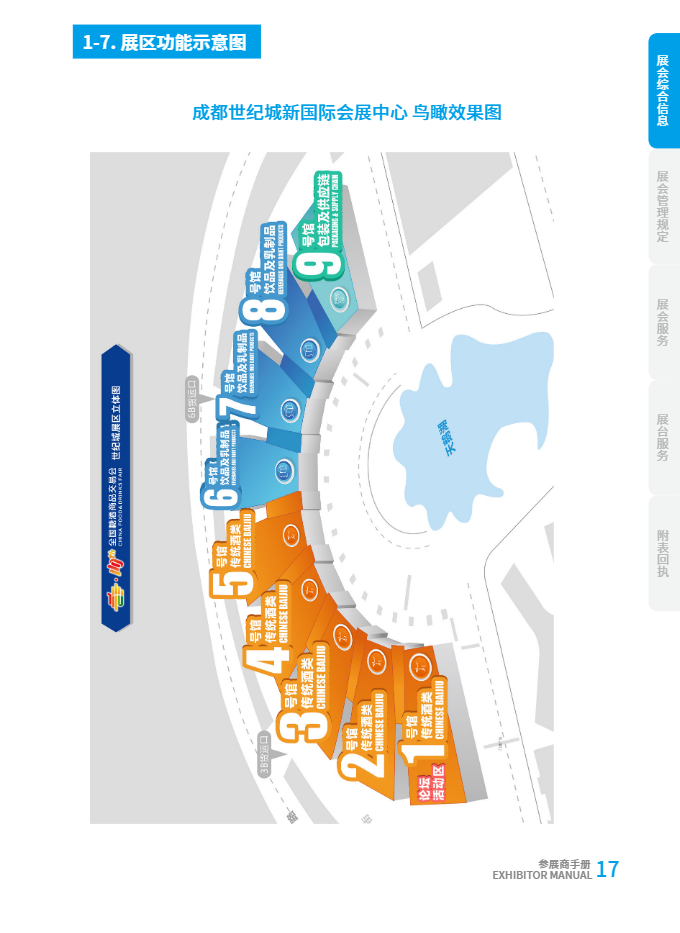 世纪城:酱酒专区、清香酒专区、川酒专区、黄酒专区、保健酒专区、茶饮专区、乳品及冰激凌专区、中国白酒金三角产业链专区