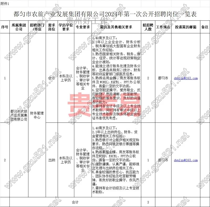 都匀市农旅产业发展集团有限公司2024年第一次公开招聘公告