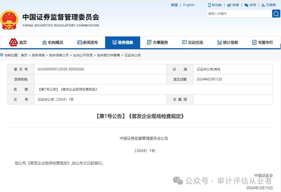 现公布《首发企业现场检查规定》,自公布之日起施行。