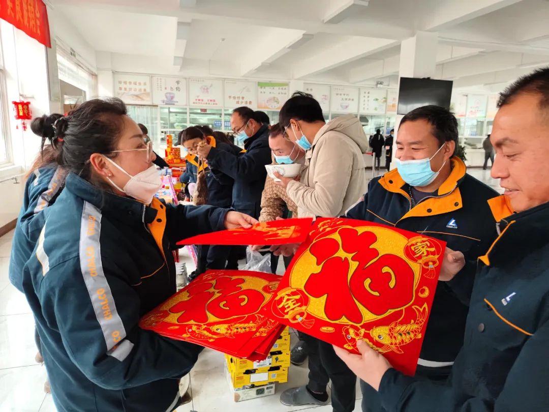 走进会场,各式各样的年货展品映入眼帘,有儿童最喜欢的烟花爆竹,有象征年味的腊肉,有喜庆的福字对联,有可口的水果,也有当地特色的核桃乳,一应商品琳琅满目,浓浓的年味呼之欲出。伴随着欢快的音乐,幸福感直接拉满,俗话说的好,“衣锦还乡不如年货满眶”,职工们纷纷来到感兴趣的商铺前挑选起来。人潮涌动间,年货被一扫而空,职工们大包小提地满载而归,脸上挂满了开心的笑容。活动期间,公司工会发放了福字和对联,为职工送上了新春祝福。(宁 宁)