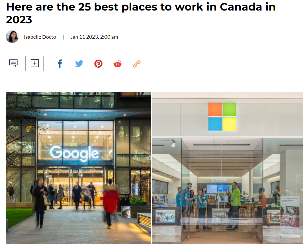 2023年的加拿大,哪些公司最值得工作?其中不乏一些大家耳熟能详的名字、一些国际巨头企业: