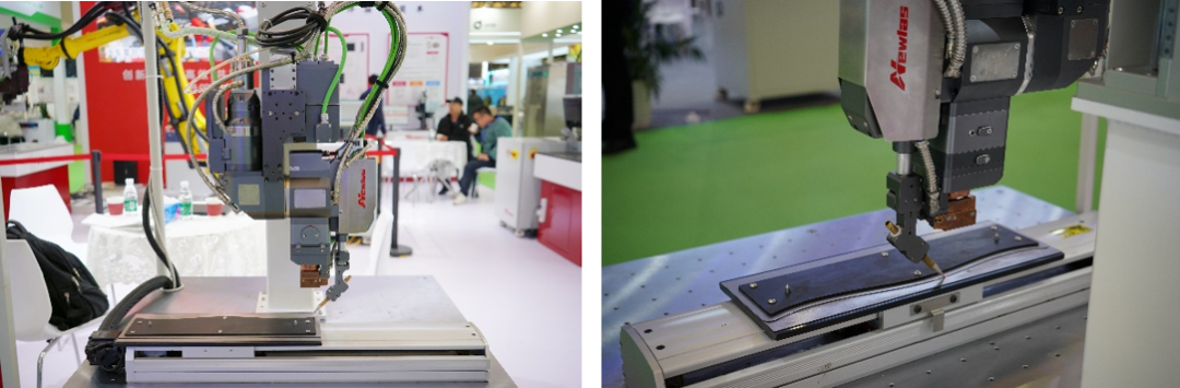 新耐视NewScan系列高精度3D振镜激光焊接头配备高度跟踪相机,搭配国产锐科高功率激光器,现场展示飞行焊接过程。NewScan-3D振镜焊接头具备高适用性和高精确度,可以根据不同的电池模组进行视野范围调整,且焦点响应速度快,在超高速情况下可实现高质量焊接,全反馈实时监控功率,保障焊接工艺的稳定性。