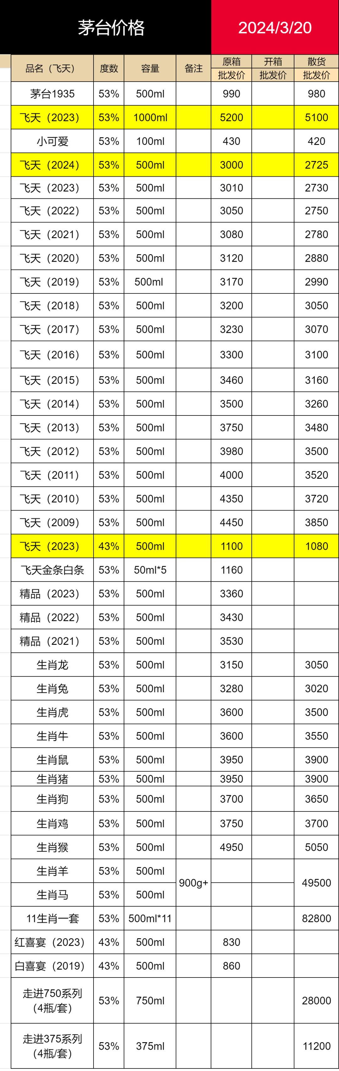 每日源代价-白酒批发报价3月20日