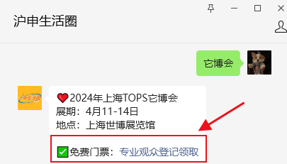 关注后,进入后台聊天框发送【它博会】,即可领取门票