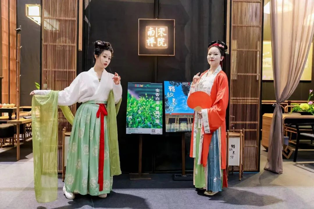 活动策展人黄建辉老师共打造了十幢风格各异的非遗茶空间,分别结合了古风及竹文化的布置,每间都可以供现场来宾品鉴安吉白茶、白茶含片、安吉红茶等不同风味的安吉茶品。