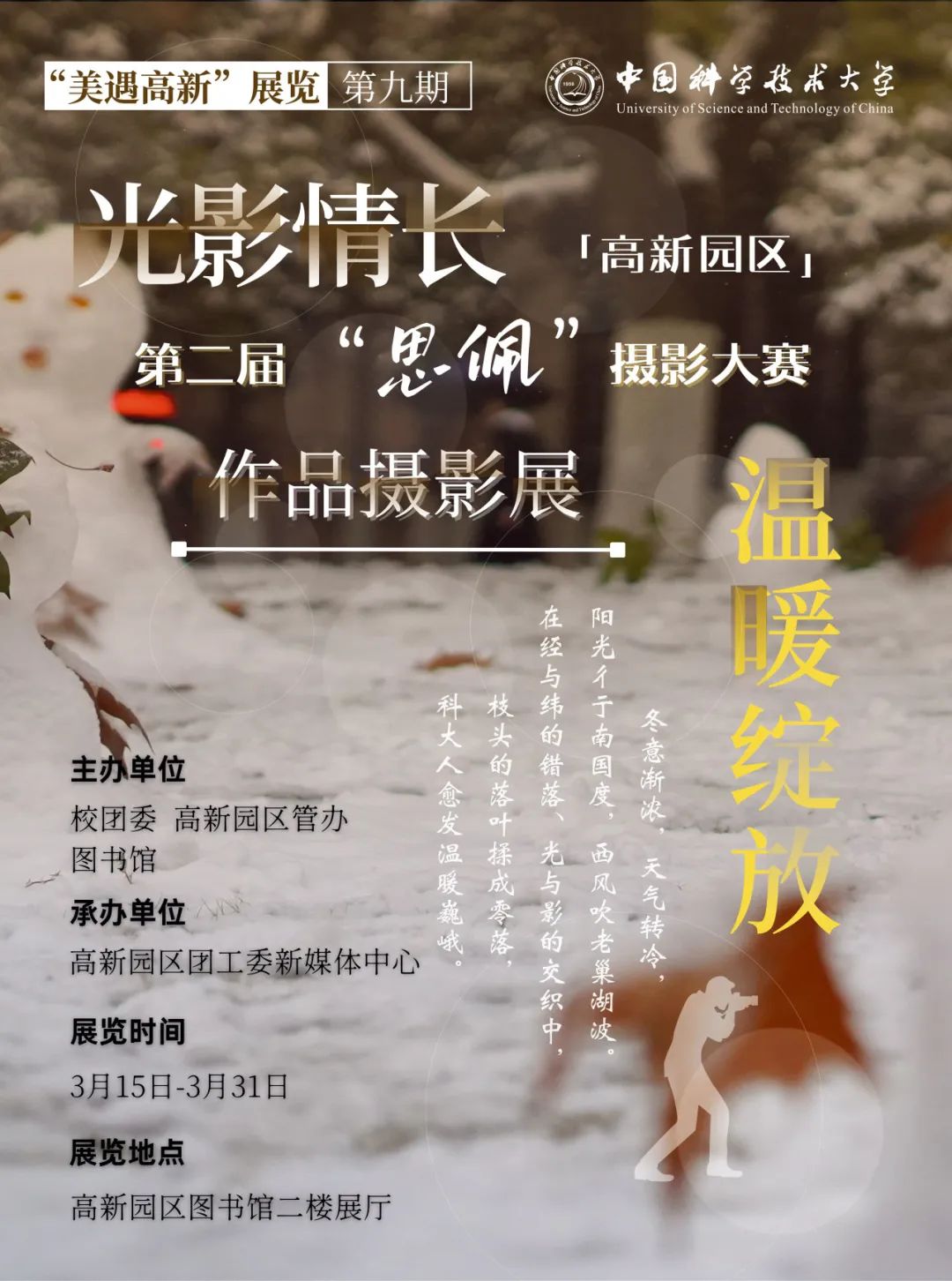 经过两个月的投稿与评选,高新园区第二届“思佩”摄影大赛圆满收官啦!此次大赛的参赛作品主旨在于展现生活中的温暖,捕捉到那些能够温暖人心的场景。