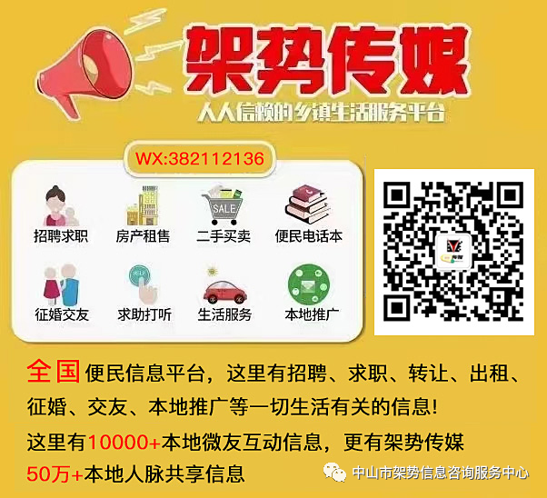 亲!在茫茫网络能遇见您,是我们的幸运!无论晴天雨天,与您相识的那天,一切都如此的美炒!我们专业从事广告推广,有丰富人脉资源,资深的团队,高质量的设计队伍,多元化的线上渠道!拥有各种私域流量,覆盖广东各大城市以及中山各镇区包括:石岐➕小榄➕东升➕东凤➕古镇等等!让客户低成本投入得到高效益!我们将一如既往竭诚为您服务!