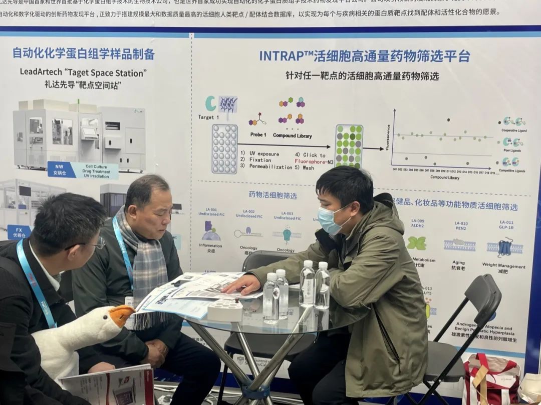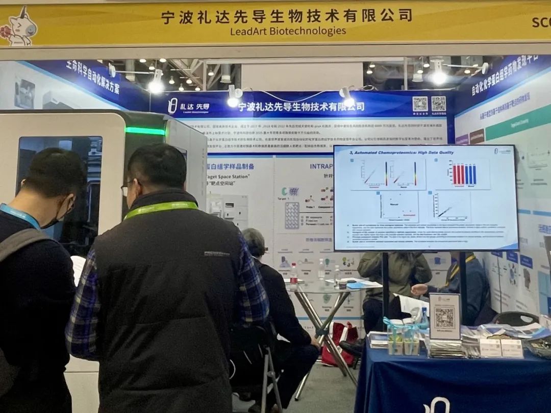 礼达先导在SC023展台重点介绍了其全自动化学蛋白质组学样品制备系统以及INTRAP™活细胞药物高通量筛选平台。其中,礼达先导“靶点空间站”首次实现了细胞培养和药物蛋白组的联用,具备了新药筛选和临床辅助诊断的重要应用价值。这一创新技术受到了众多参会代表的高度关注,吸引其驻足咨询并进入深度探讨和交流。