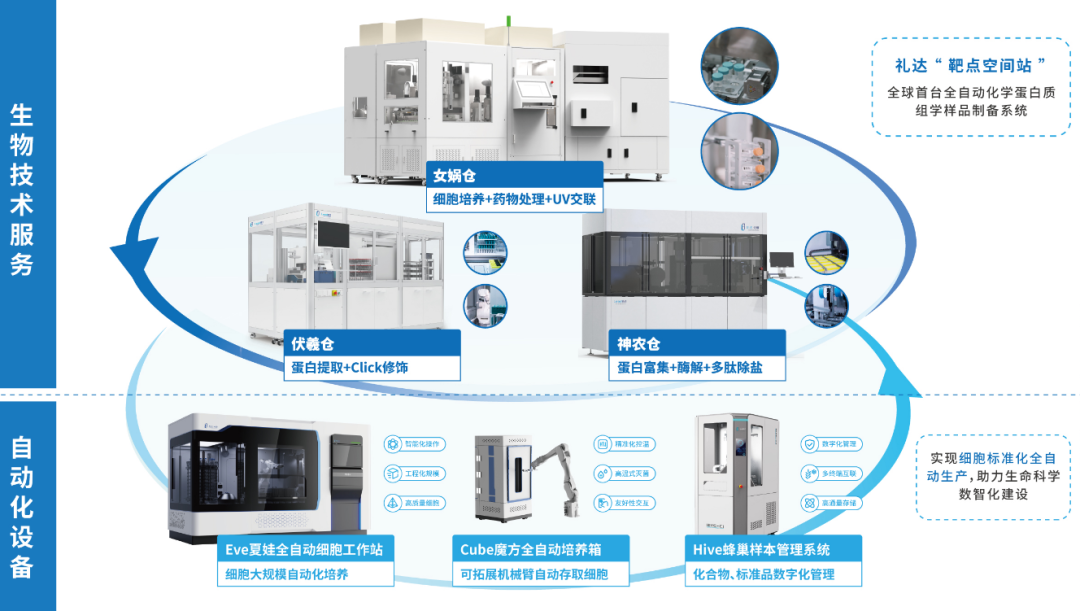 作为医疗产业链中至关重要的一环,礼达先导在此次展会上全面展示了其所提供的关键服务和创新产品。包括靶点鉴定、药物筛选、自动化化学蛋白组学样品制备等生物技术服务,和以细胞自动化制备和化合物自动化管理为核心所设计研发的各类自动化设备,礼达先导旨在为客户提供更高效、更可靠的实验和研发解决方案。