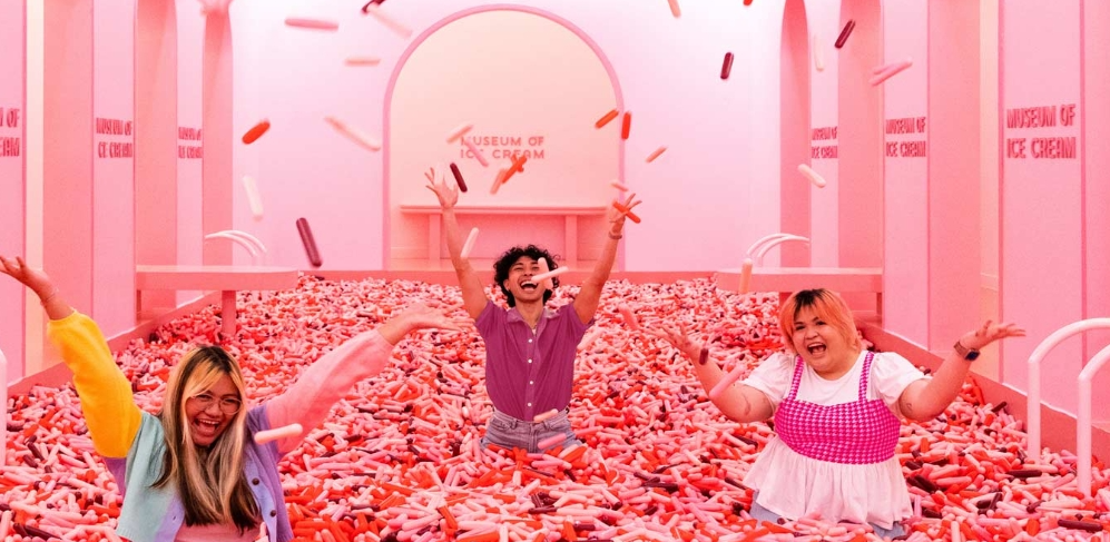 2 沉浸式数字技术基本概述数字技术的飞速发展正在改变公众的生活和娱乐方式。沉浸式数字技术指的是通过数字化手段创造出可以深度沉浸的,并且仿真感强烈的数字化体验技术。沉浸式数字技术整合了虚拟现实技术(VR)、增强现实技术(AR)、混合现实技术(XR)、交互式投影技术等前沿性数字技术。通过这一技术,可以为消费者创造一个能够沉浸其中的虚拟的或增强的环境之中。将消费者带入一个数字化的、虚拟的环境中,让消费者产生身临其境的感受。尤其在当前体验经济的时代,沉浸式数字技术广泛应用于文娱活动,改变了公众的休闲娱乐方式,以及传统文化和内容的传播方式。沉浸式数字技术与文娱产业的融合,成为文娱产业数字化转型的重要方向之一。沉浸式数字技术为文娱产业提供了前沿的数字技术, 创造了更真实、深刻、个性化、丰富和引人入胜的文娱消费内容。无论是沉浸式戏剧、演艺、新媒体艺术还是实景娱乐,都展现了沉浸式数字技术在不同领域具有的强大潜力和广泛的应用前景。近年来,在文化消费市场上,“网红展”迅速崛起,甚至开始替代传统的博物馆、艺术展览。传统展览注重对展品、文化和历史的呈现,是一种传统的文化传播和交流手段,主要吸引的是对相关领域感兴趣的消费者。展览目的在于文化的展示、传播及思想的表达,也是一种大众化的文化教育手段。随着展览行业有序发展,展览场所成为传递讯息、文化等综合信息的场所。而“网红展”则是以观展者为中心,融合数字技术,打破传统文化和传统艺术的表现形式,将数字技术和文化、艺术相融合,衍生出更多具有沉浸感、体验感的文化形式。强调观众展览时的交互感、体验感及沉浸感。不止如此,对“网红展”来说,有更强烈的引导拍照、吸引公众流量的目的。展览“网红化”之所以可以成为一种主流的策展思路和营销方式,在展览行业引起了巨大变革,并且能够受到普通大众的喜欢,很重要的原因是比起传统的展览方式,“网红化”的展览还通过数字技术和文化的有机结合,创造出更为吸引观众、充满创意的展览形式。同时,“网红化”展览可以让消费者近距离体验展览品,甚至参与其中。展览从传统的被动观看转变为一种互动式体验。特别是早期的“网红化”艺术展,往往被称为为社交平台而生的艺术展。最早的“网红化”的展览可以追溯到2016年美国纽约开设的一个拥有6间主题房间的“冰淇淋博物馆”。在每一个主题房间中都安置了各种各样的冰淇淋装置,如彩虹糖泳池、巨型冰棒、蛋筒墙等,并且使用了高饱和色调,让整个空间充满活力。