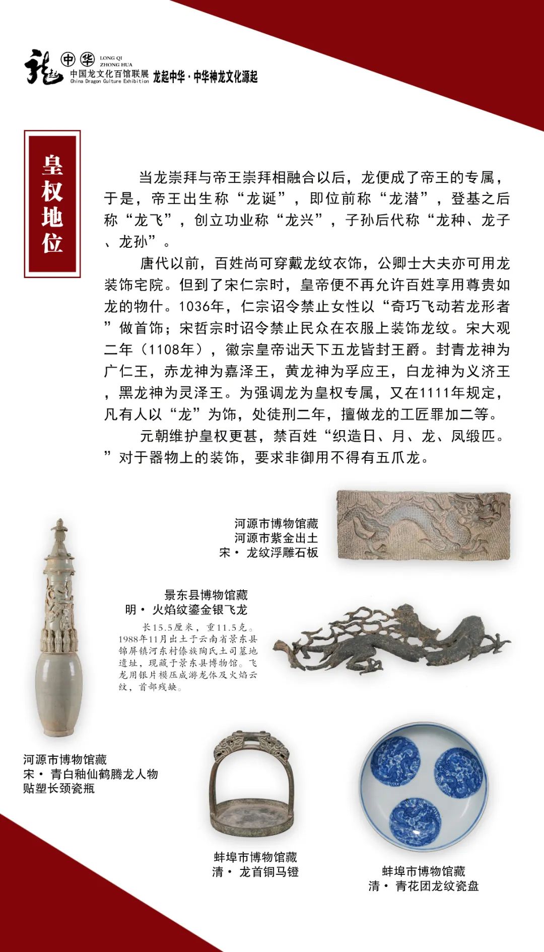 当龙崇拜与帝王崇拜相融合以后,龙便成了帝王的专属,于是,帝王出生称“龙诞”,即位前称“龙潜”,登基之后称“龙飞”,创立功业称“龙兴”,子孙后代称“龙种、龙子龙孙”。