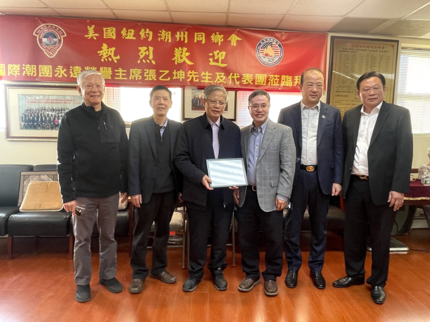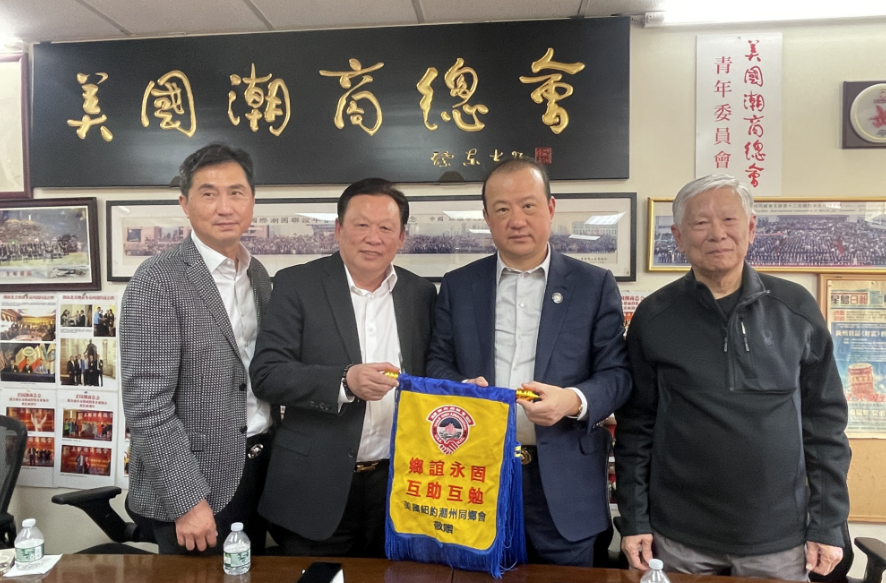 2024年3月16日,国际潮团总会永远荣誉主席、执行副主席、新西兰潮属总会创会会长、美国潮商总会荣誉主席张乙坤,国际潮籍博士联合会副会长、北美潮籍博士联合会荣誉会长林仕博士、北美潮籍博士联合会会长林军教授莅临美国潮商总会、纽约潮州同乡会。美国潮商总会东部执行主席、纽约潮州同乡会会长李汉强和夫人,永远总顾问刘初汉,第一常务副会长蔡明,常务副会长吴志炜、郑谆楷、李德安,副会长蓝章兴、萧钦兴,名誉顾问姚甄碧月,副秘书长何国俊、林栢如、马立禧,美国潮商总会共同主席、宾州费城潮州会馆会长陈香夫妇,美国国际华人科技工商协会主席李大西博士等接待来宾,并座谈交流。
