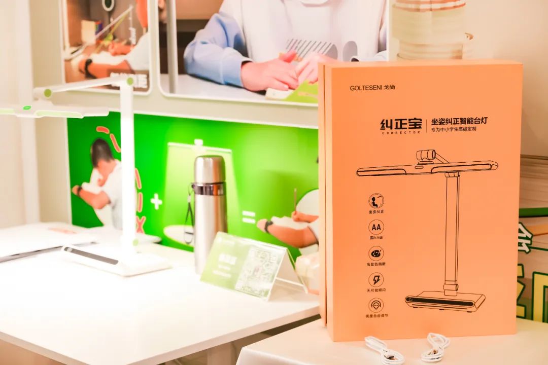 在博华灯饰优选及设计师联盟展位中,就有一个集合了5项专利的“纠正宝”专区,这不仅是护眼台灯,也是一个智能测距,纠正坐姿的学习空间;