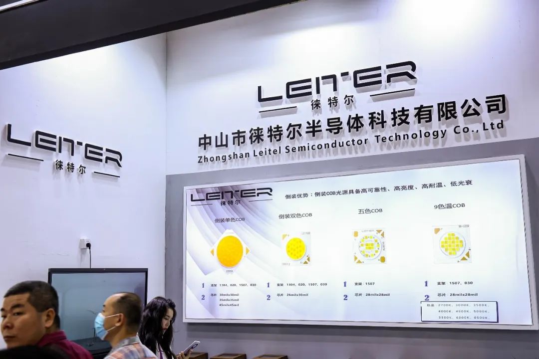 位于A馆的徕特尔半导体,数十平方米的展厅,仅聚焦于一款产品:轻智能9色温调光调色系列COB倒装芯片,凸显其专精的研发实力。