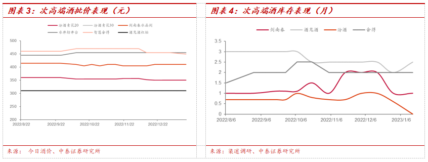 2.2.次高端:批价保持稳定,渠道库存有所上行