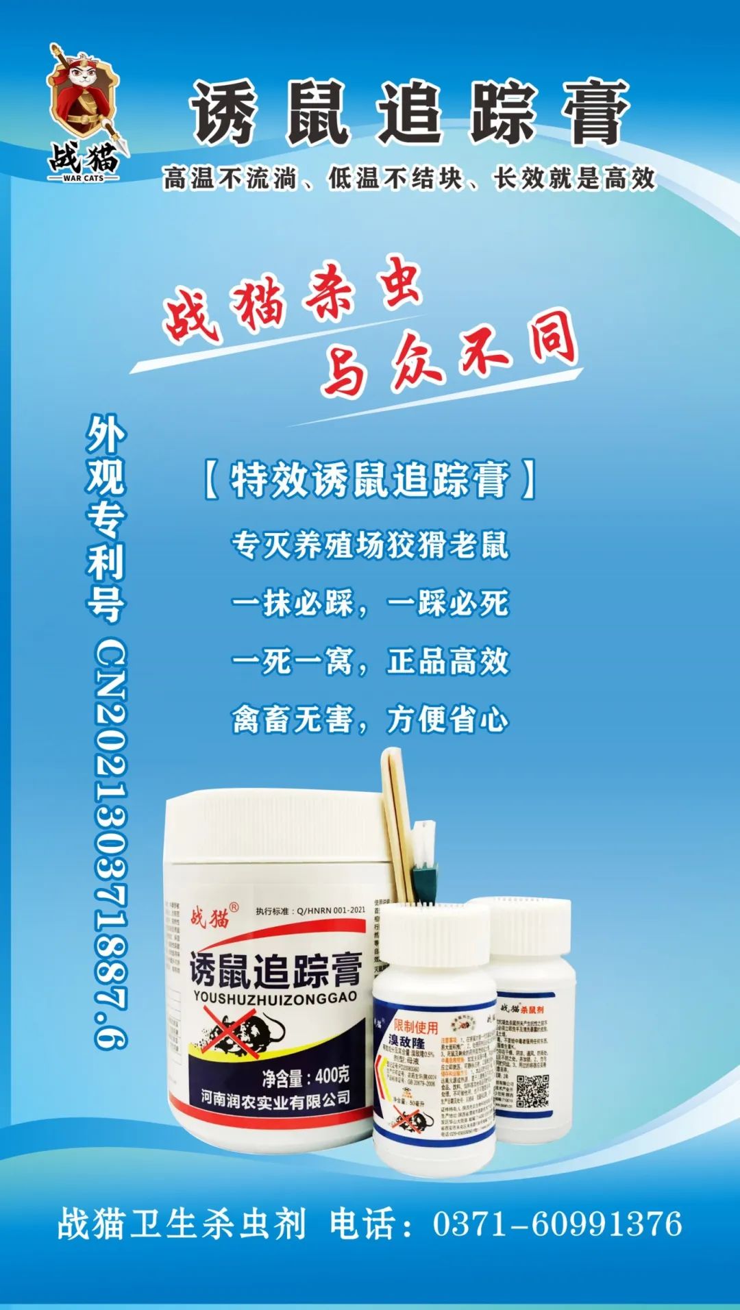 河南润农实业有限公司以“中国农民服务为使命”专注于卫生杀虫剂技术推广服务、杀鼠剂、苍蝇药、蟑螂药、鸡虱子药、粘鼠板等销售。专业从事农药制品,溴敌隆,溴鼠灵,粘鼠板,苍蝇药,蟑螂药的生产销售,打造中国更具安全,环保绿色,创造更好的环境。公司注册资金300万,国家定点农药鼠药生产销售商,生产位于渭南市产业集聚区,公司位于河南省郑州市,公司主要致力于卫生杀虫剂化学品产业。