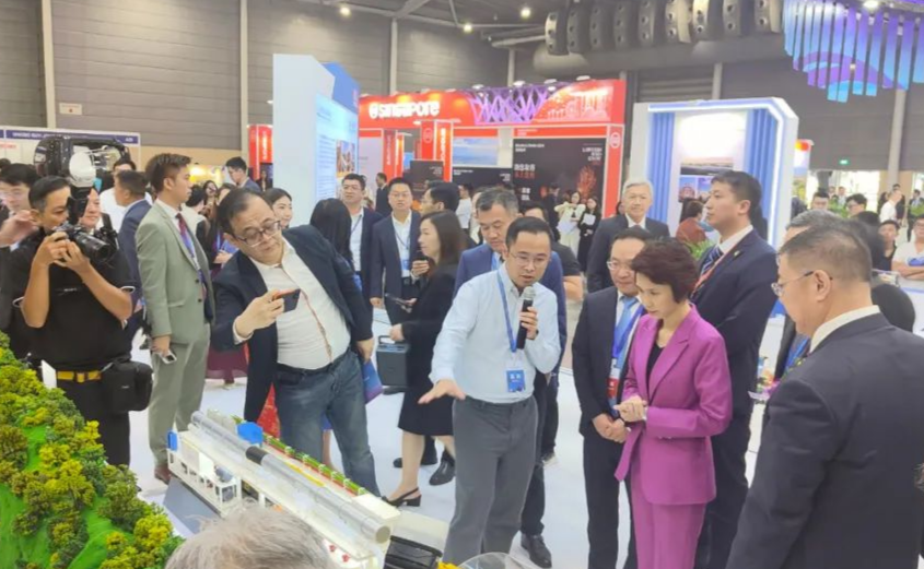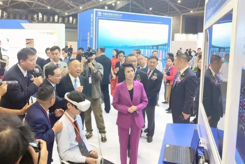 在本次展览中,中国铁建展位采用了多种技术展示手段,例如借助AR\VR技术720度还原真实场景、日尼利亚阿布贾城铁机车模型、土压平衡盾构机“澳琴1号”模型、“铁建大桥起1”号起重船模型等等,来展示多项施工技术难题的整体解决方案。