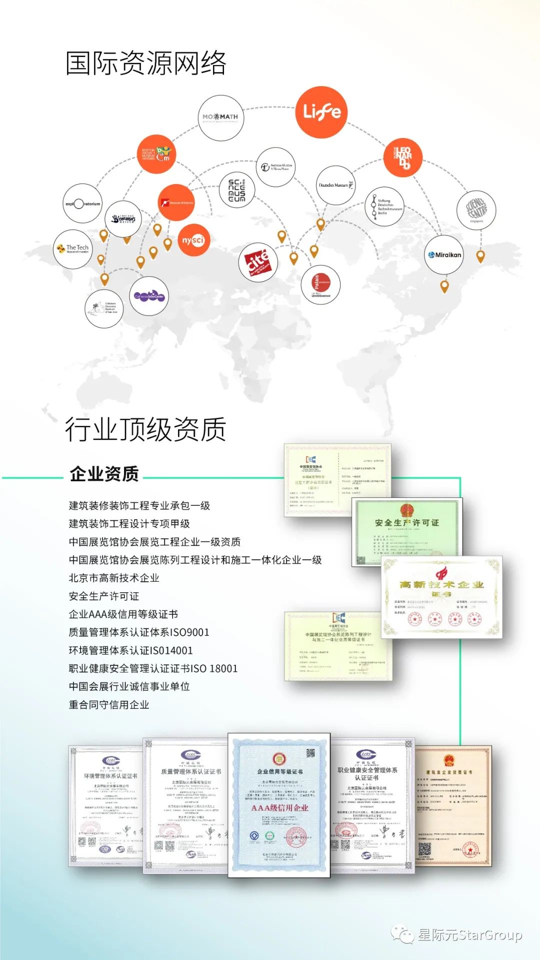 星际元Star Group团队秉承专业的服务精神,凭借专业技术团队,从顶层策划、方案设计、展项研发,严格执行ISO质量环境、安全管理体系,STAR项目操作流程及STAR星级服务标准,确保每个项目成功落地。星际元Star Group始终保持着不懈的努力,致力于助推中国企业迈向国际舞台,展示其卓越的国际品牌形象。为此,我们将持续提供优质的服务,支持中国企业在国际舞台上展现其独特的魅力与实力。