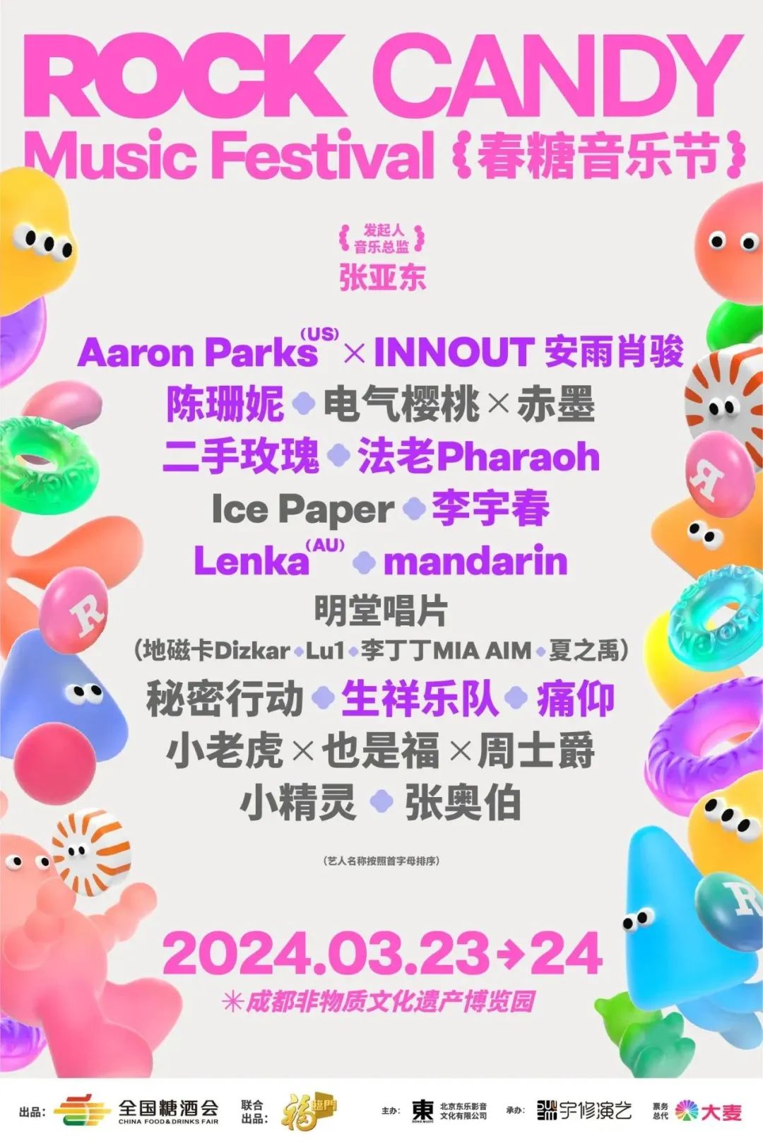 这是著名音乐制作人张亚东发起的首个音乐节作品,聚合了不同领域中的领军人物,包含痛仰乐队、二手玫瑰、陈珊妮、李宇春、蕾恩卡·克莉帕克(Lenka Kripac)、艾伦·帕克斯(Aaron Parks)等国内外知名音乐团队和音乐人,为成都打造限定版“歌单”。中国泰斗级音响师、北京冬奥会开闭幕式和杭州亚运会开闭幕式音响总设计师何飙出任本次音乐节音响总监,助力实现现场的最佳音质。