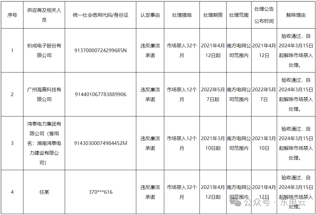 【公告】南方电网公司供应商处理解除公告