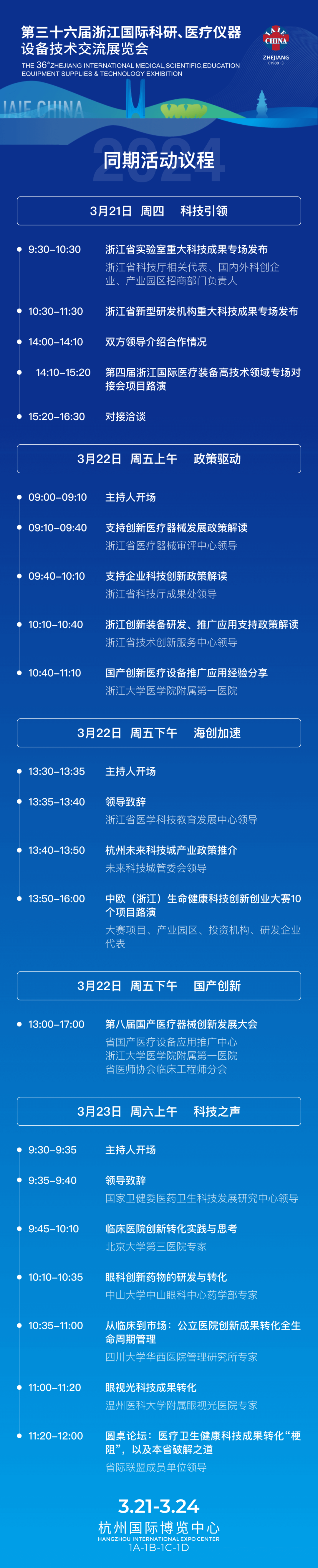 第三十六届浙江国际科研、医疗仪器设备技术交流展览会将于2024年3月21日-24日在杭州国际博览中心举办。