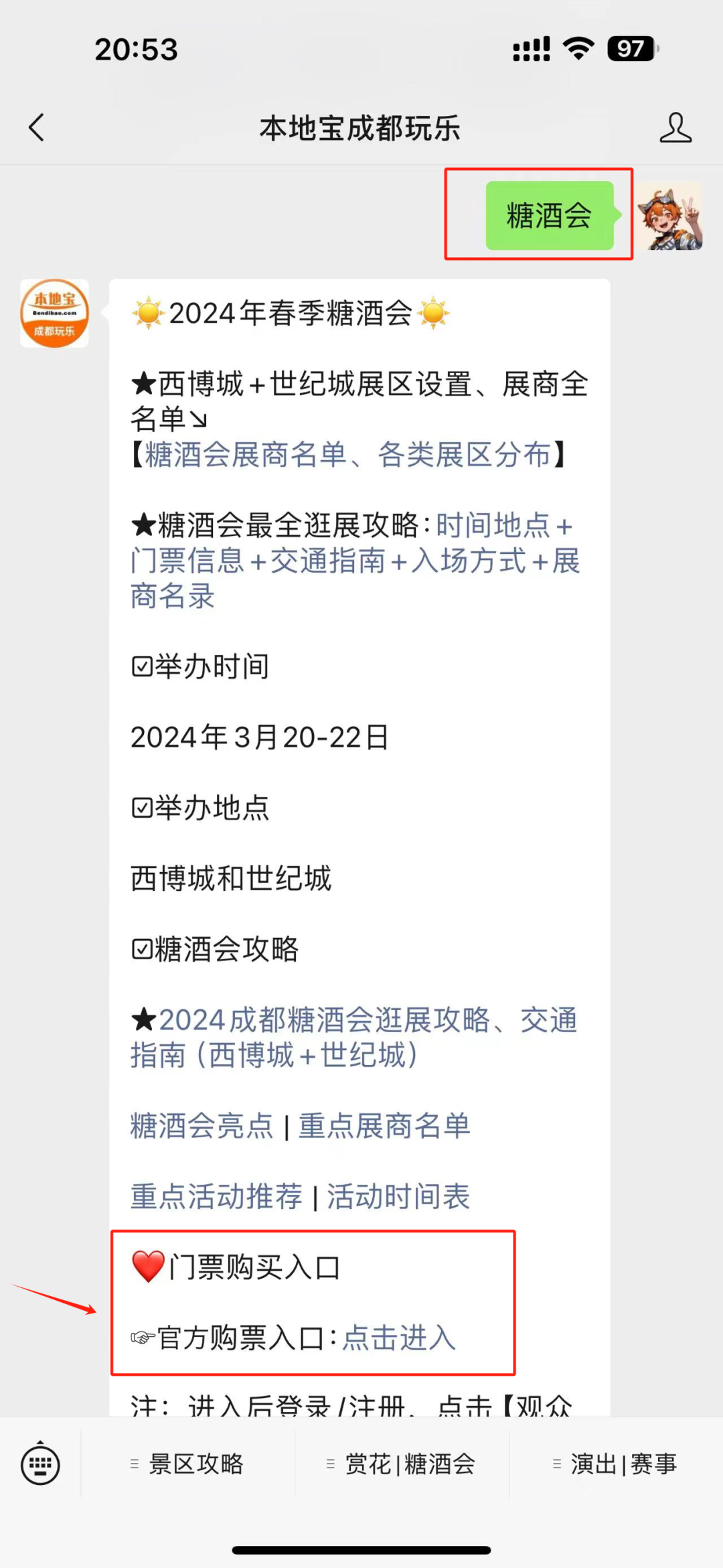 在后台聊天框回复【糖酒会】