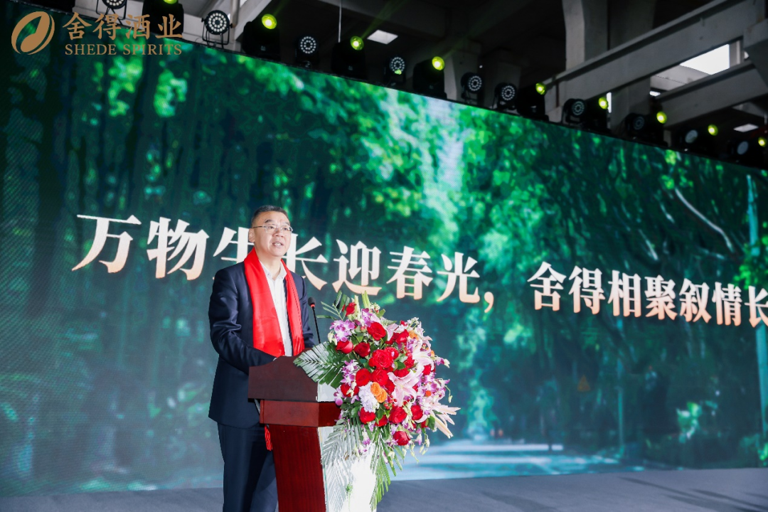 蒲吉洲对现场来宾表示热烈欢迎,并在《春酿如金老酒天成 品味舍得共敬人生》的主题讲话中,用对历史、时代与未来的三重“致敬”,深度阐述舍得酒业在推动传统白酒文化实现创造性转化与创新性发展方面做出的努力。