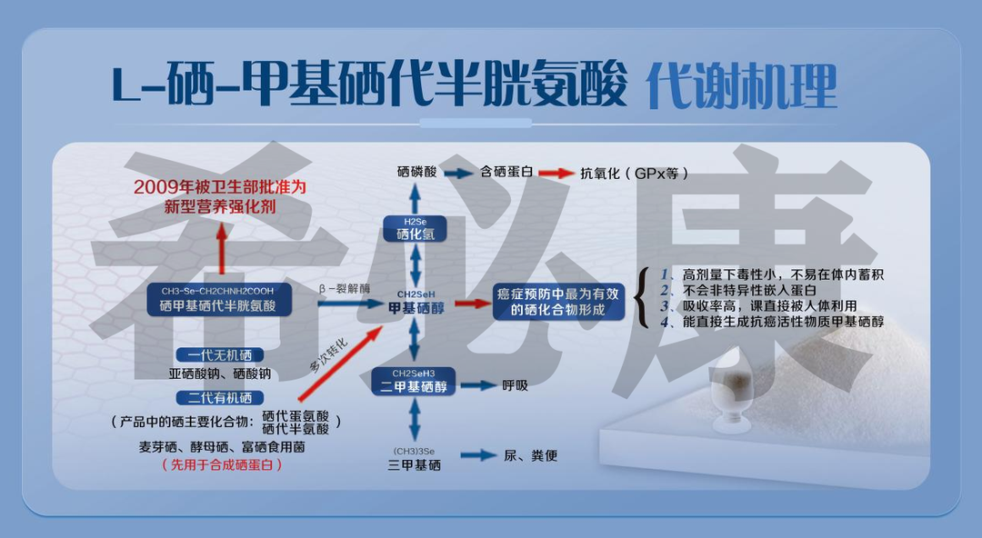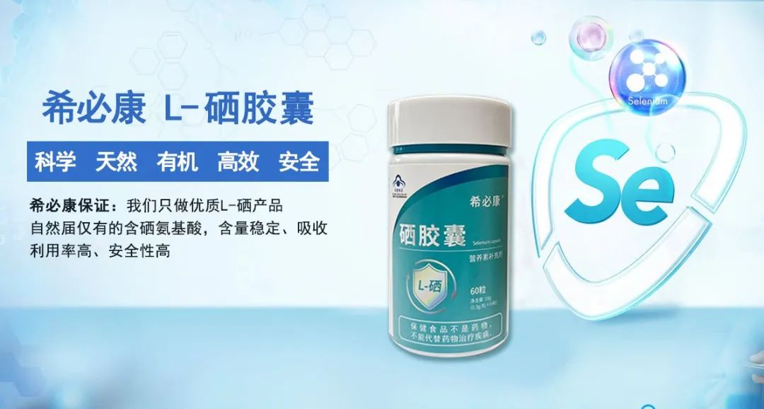 最后提醒大家,目前国内补硒产品较多,所以购买补硒产品时,最好选择有权威标识的有机硒产品,选择安全性高的,使人体更容易吸收的补硒产品,尤其是要学会分辨硒源,希必康硒胶囊这样的L-硒-甲基硒代半胱氨酸原料,具有安全可靠,活性更高,吸收利用率高等特点,对于科学定量补硒是很好的选择!
