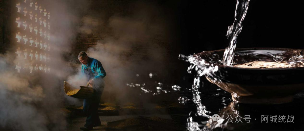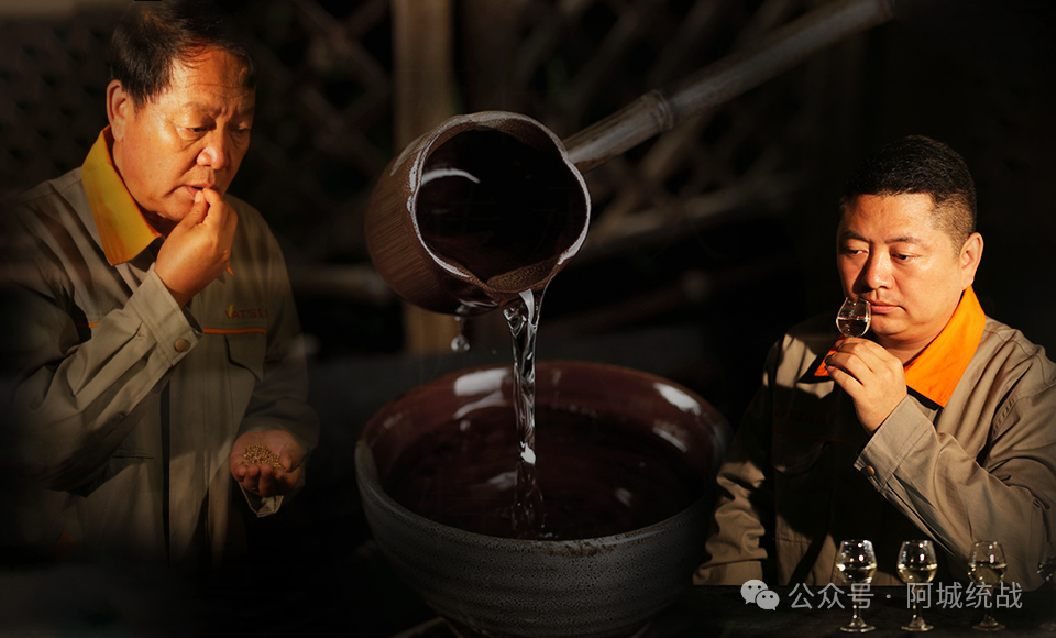 ↑省级非物质文化遗产“玉泉酒两步法酿造工艺”第五代传承人张玉柱、第六代传承人张嘉鑫